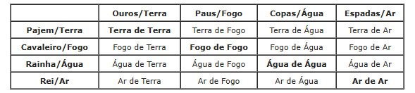 - enquanto as cartas numeradas falam de situações nas quais a energia desses elementos se manifesta, as figuras da corte representam a manifestação dessa energia no indivíduo;