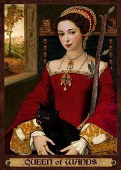 A rainha encarna a figura da matrona, da mãe, do feminino superior e autoritário. As Rainhas têm a mesma energia da Imperatriz, a carta 3, porém manifestada em um nível mais humano e imediato. De fato, é como se cada Rainha fosse um aspecto da Imperatriz.