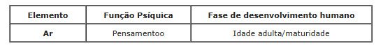 A função psíquica associada ao elemento Ar é o pensamento, a capacidade de emitir julgamentos e tomar decisões através do raciocínio. O raciocínio, por sua vez, consiste na habilidade de alcançar a verdade através de um processo de comparações e abstrações dos fatores existentes em uma certa questão.